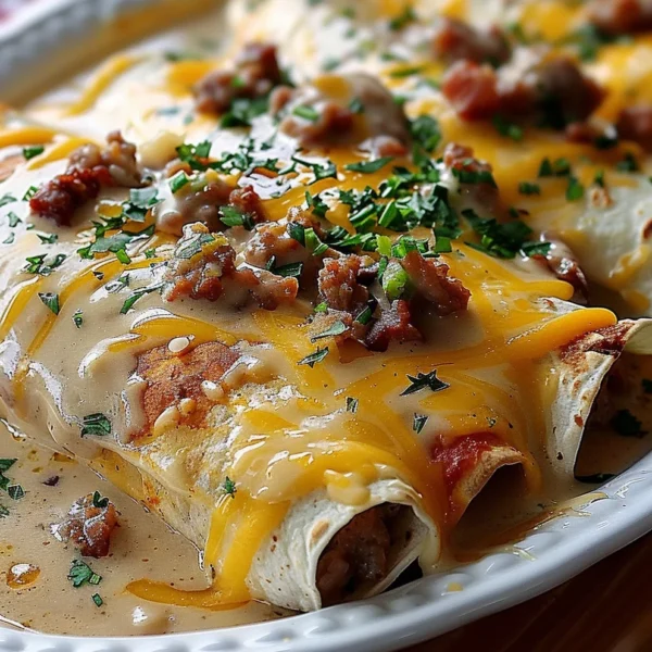 Amazing Southern Beef Sausage Gravy Breakfast Enchiladas